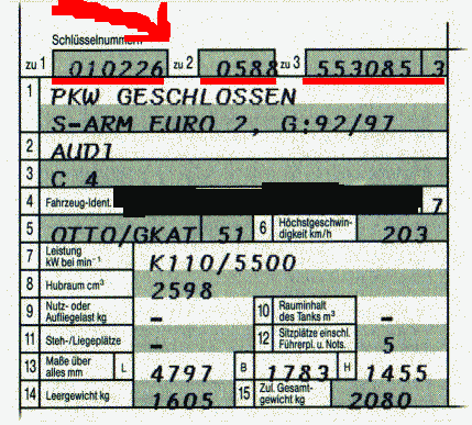 (Meistens eine Kombination aus Buchstaben vor Motor oder Getr.Nr. z.B. JX bei VW-Motor)